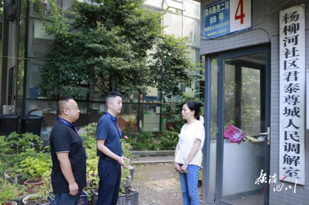 荥经县纪检监察干部在君泰尊城小区了解自来水管网改造情况。(陈默然 摄)