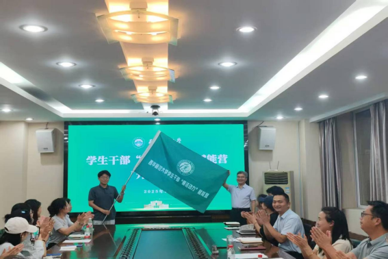 驻西华师范大学纪检监察组组长张超为“廉洁动力”赋能营授旗(王乐 摄)