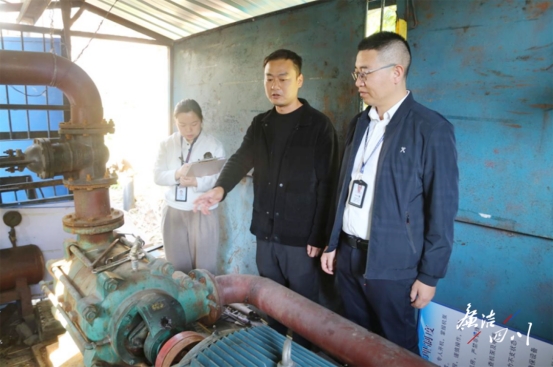 西区格里坪镇纪委到格里坪村水泵房查看取水情况。(李妍 摄)