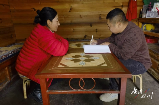 木里县依吉乡纪检监察干部走村入户收集民意。(蔡色呷 摄)