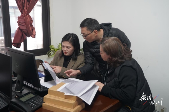 宜宾市翠屏区办案人员翻阅环卫站相关票据凭证、讨论案件情况。(邹梦蓝 摄)