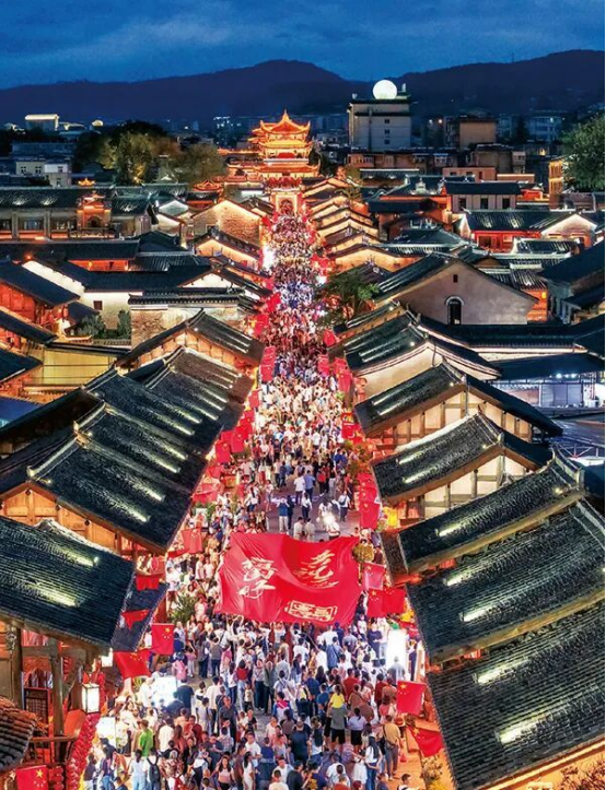 作为南方丝绸之路与茶马古道上的重镇,四川省凉山彝族自治州西昌市建昌古城自古便是汉、彝、回、藏等多民族交融的家园,多元文化在此共生共荣。如今,它携着独有的历史厚度与时代温度,迎来八方游客与市民。图为2025年10月3日,建昌古城内灯火璀璨、游人如织。 四川省委宣传部供图