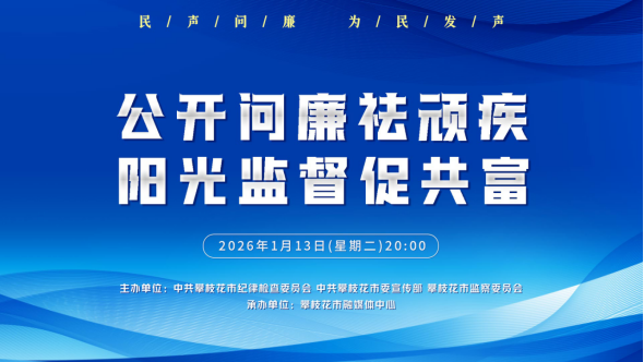 本期内容:本期《民声·问廉》全媒体直播节目将以“公开问廉祛顽疾,阳光监督促共富”为主题,重点围绕群众关心关注的领域开展问政问廉问效,督促责任部门认真履职尽责、主动担当作为,切实解决群众急难愁盼问题,推动政风行风持续向上向好,为高质量发展建设共同富裕试验区、加快建设川西南滇西北现代化区域中心城市提供坚强保障。