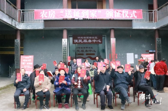 巴中市举行农房“送证到家”颁证活动,群众纷纷“晒”出不动产权证。(张书浩 摄)
