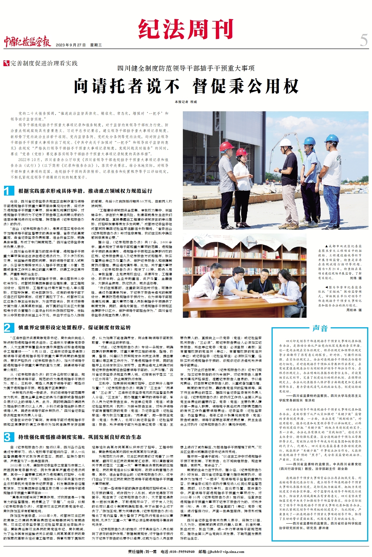“我们在起草时,注重做到突出针对性、可操作性,通过负面清单列举、不记录不报告受追究的制度设计,震慑防范违规插手干预行为,也为领导干部拒绝请托说情、重大事项办理人员抵制插手干预提供了制度支持。同时,避免片面性,对违规插手干预和正当履职予以区分,保护领导干部担当作为。”四川省纪委监委法规室负责人表示。