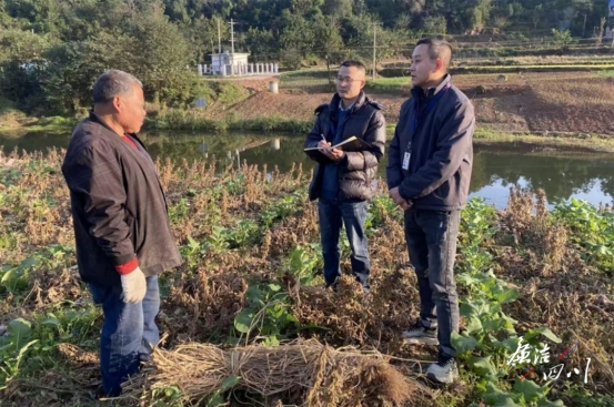 中江县纪检监察干部深入田间地头了解地力补贴发放情况。(黄明礼 摄)