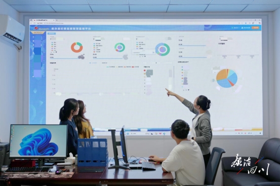 叙永县纪检监察干部运用智慧监督平台查看数据、分析线索。(张贵元 摄)