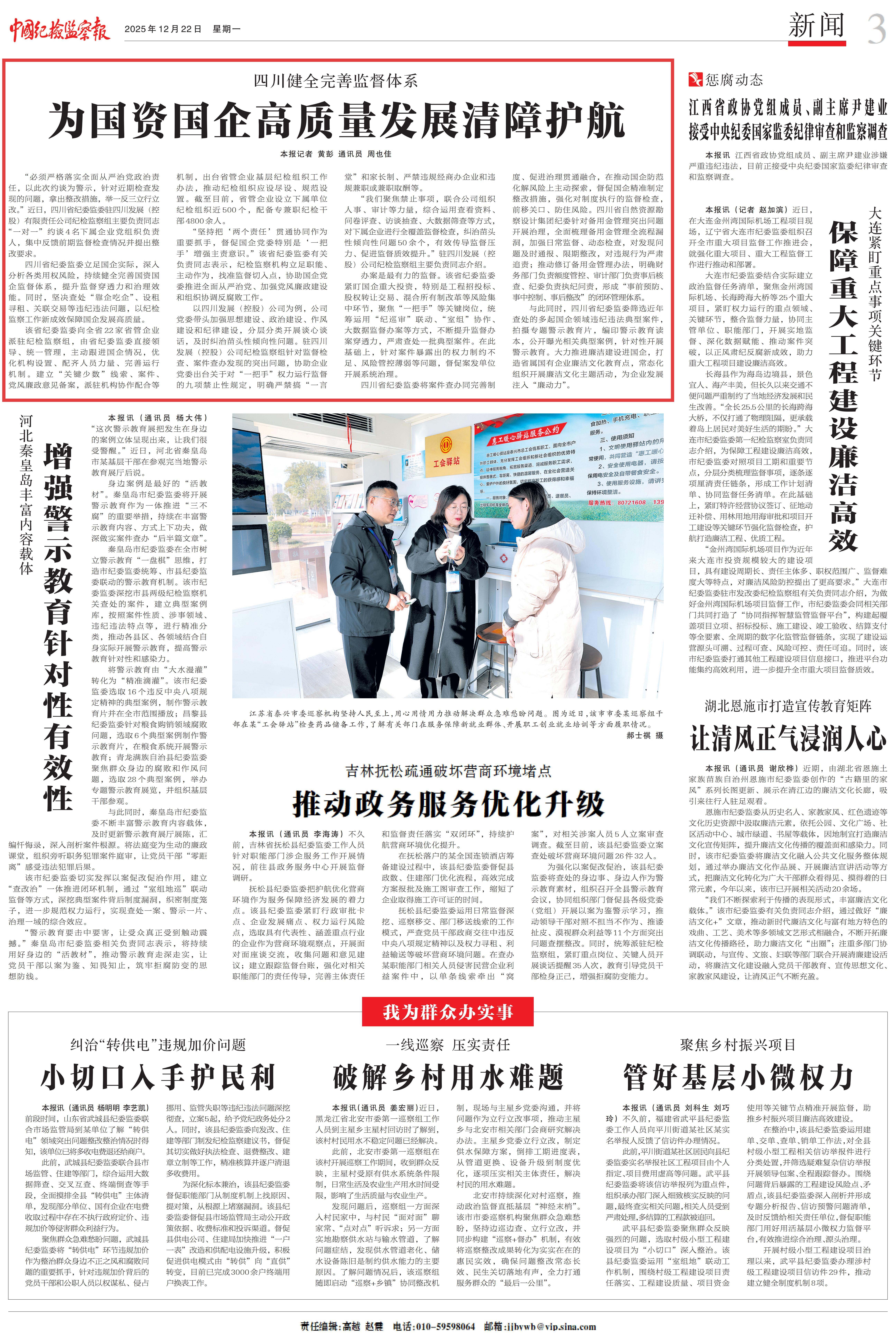 2025年12月22日,《中国纪检监察报》新闻版刊发《四川健全完善监督体系 为国资国企高质量发展清障护航》。