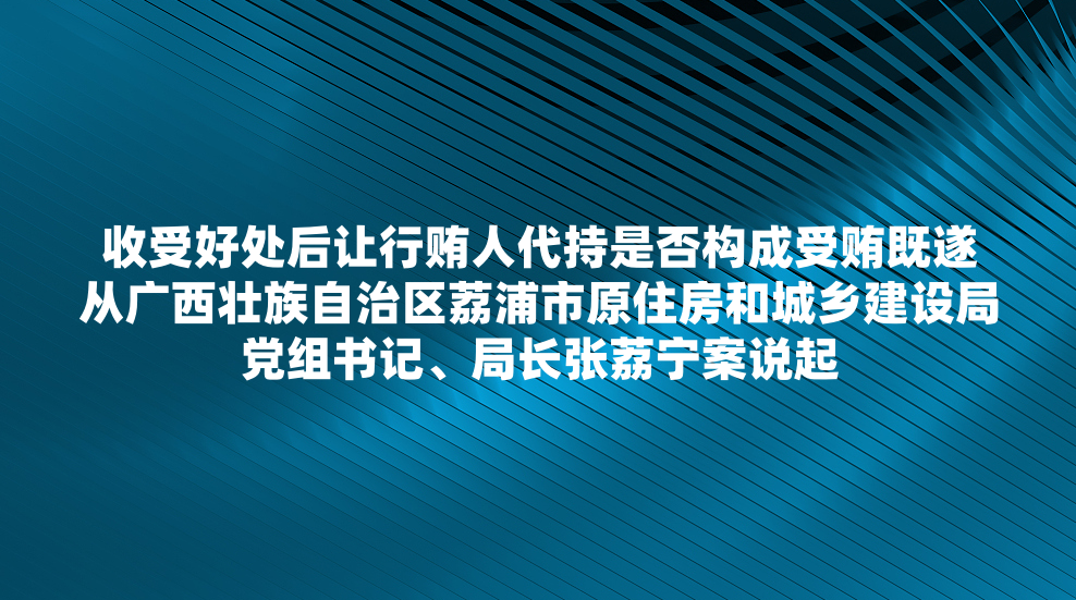 收受好处后让行贿人代持是否构成受贿既遂 从广西壮族自治区荔浦市原住房和城乡建设局党组书记、局长张荔宁案说起