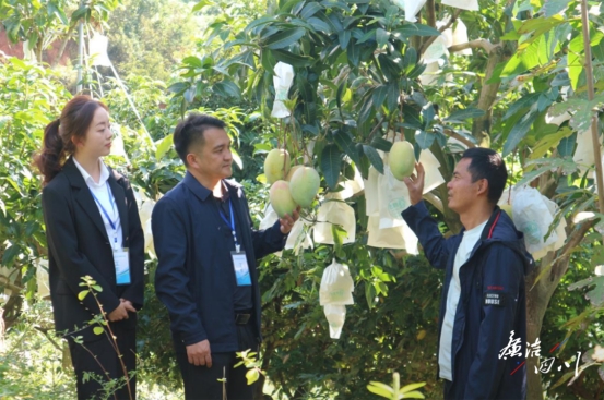 米易县纪委监委第五协作片区到白马镇龙塘村芒果种植基地,了解惠农政策落实、涉农补贴发放等民生领域政策落实情况。(陶优 摄)