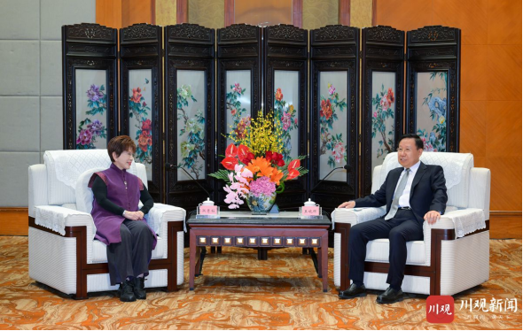 洪秀柱感谢四川省的热情接待和对台胞台企在川发展给予的关心支持。她表示,两岸同胞同属中华民族,台湾与四川血脉亲情相连、交往合作密切,愿积极推动两地进一步加强交流合作,共促国家统一、民族复兴。