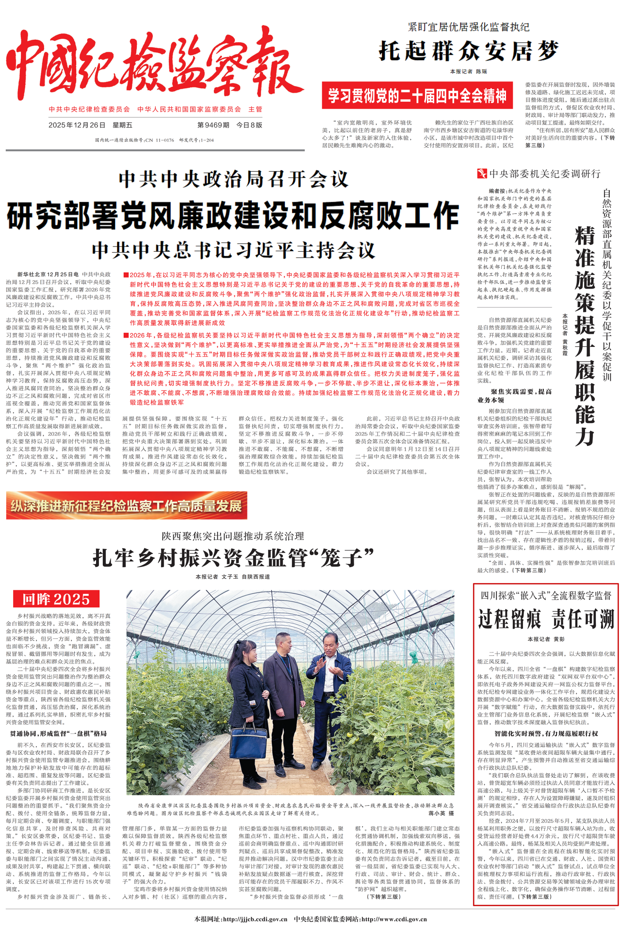 2025年12月26日,《中国纪检监察报》头版刊发《四川探索“嵌入式”全流程数字监督 过程留痕 责任可溯》。