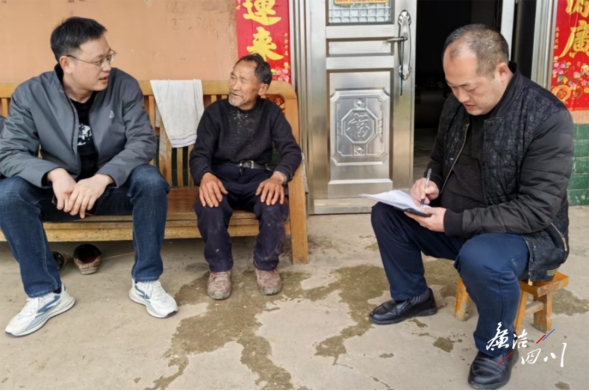 调查组逐户走访村民,核实占地及补偿情况。(魏小兰 摄)