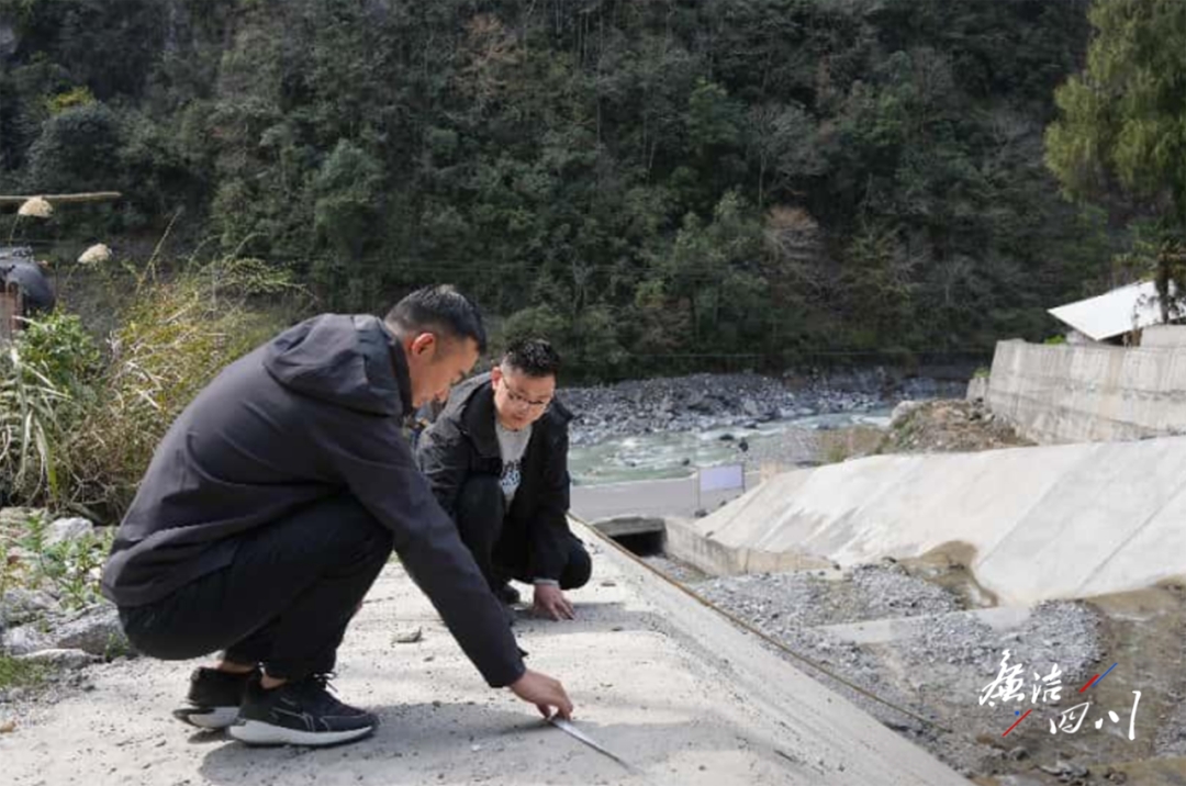 宝兴县纪检监察干部现场监督自然资源和规划局干部开展地灾治理项目占地情况勘察。(李季虹 摄)