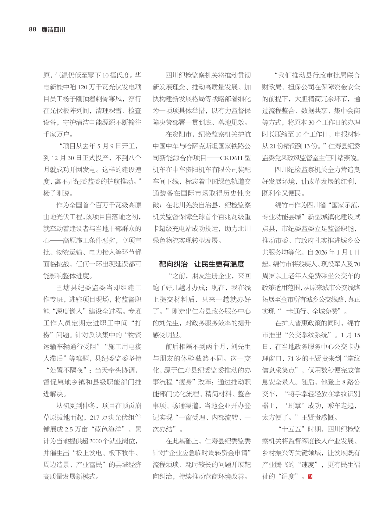 “十五五”时期,四川纪检监察机关将监督深度嵌入产业发展、乡村振兴等关键领域,让发展既有产业腾飞的“速度”,更有民生福祉的“温度”。(作者:王兆伟)