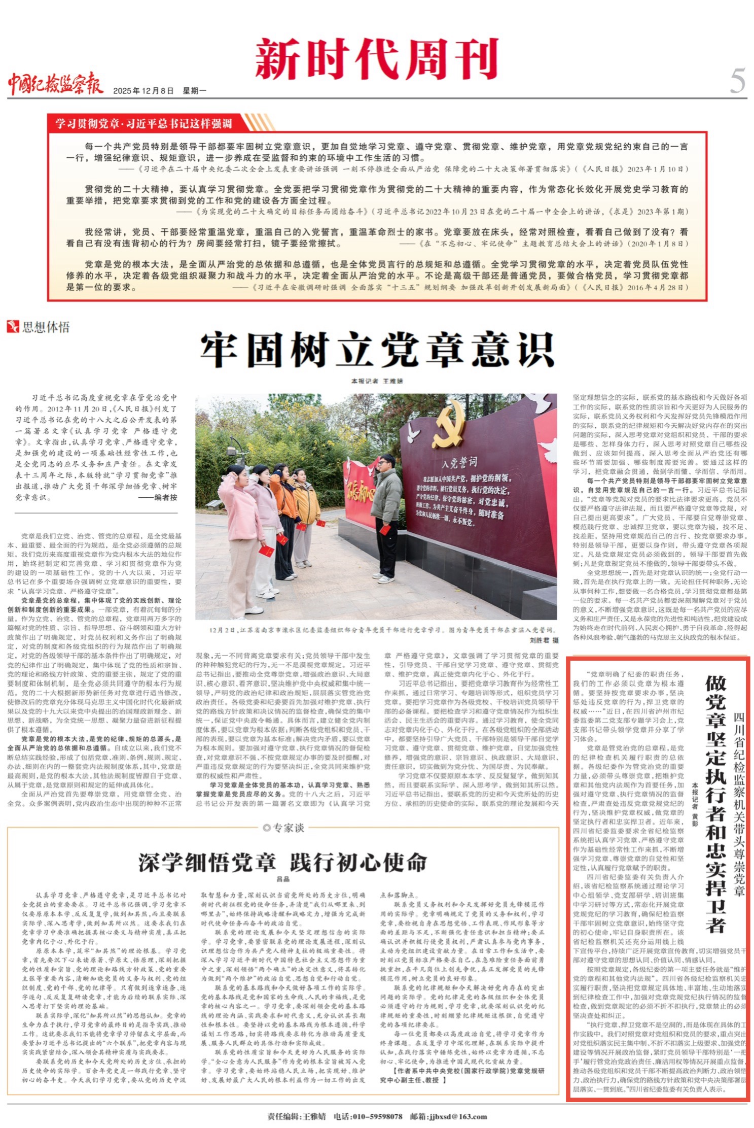 2025年12月8日,《中国纪检监察报》新时代版刊发《四川省纪检监察机关带头尊崇党章 做党章坚定执行者和忠实捍卫者》。