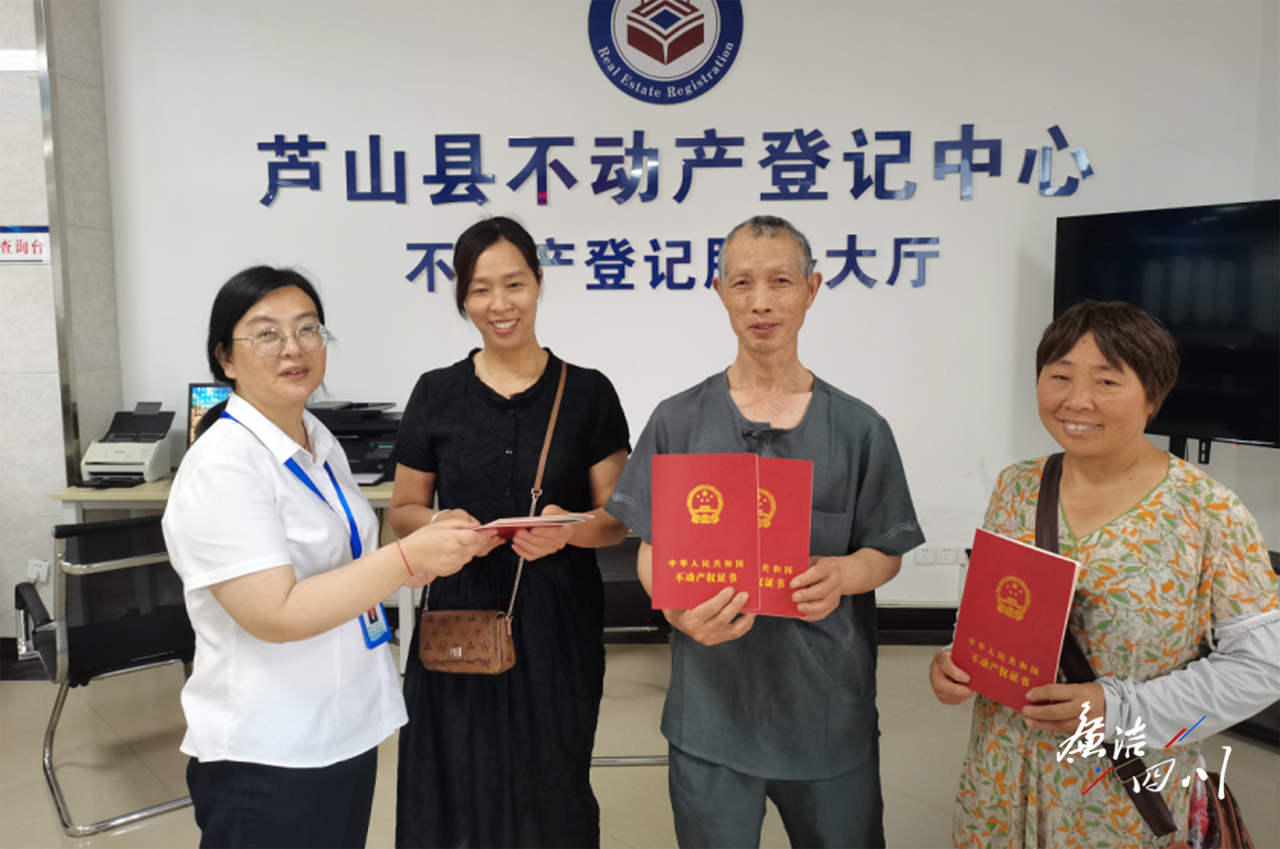 芦山县纪委监委帮助幸福首座小区住户拿到不动产权证。