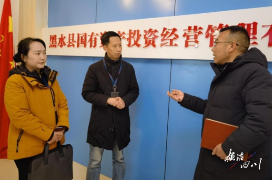 黑水县纪检监察干部在县国投公司了解充电桩整改完成情况。(陈斌 摄)