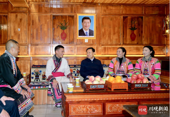 2025年10月28日,省委书记、省人大常委会主任王晓晖到平武县白马藏族乡亚者造祖村祥述加寨调研,走进脱贫户玄英早家中了解生产生活改善情况,勉励他们通过勤劳双手让日子越过越红火。