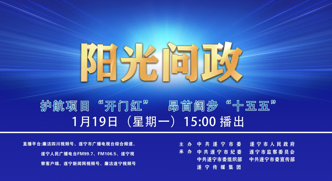 本期内容:由中共遂宁市委、遂宁市人民政府主办,中共遂宁市纪委、遂宁市监察委员会、中共遂宁市委组织部、中共遂宁市委宣传部、遂宁传媒集团承办的全媒体直播节目《阳光问政》将于1月月19日(星期一)15点准时开播。本期节目以“护航项目‘开门红’ 昂首阔步‘十五五’”为主题,针对暗访发现的突出问题,现场质询、直播互动、问政发声!