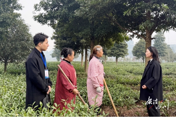 青神县纪检监察干部在万沟村了解茶园节水奖励资金发放情况。(范义晨 摄)