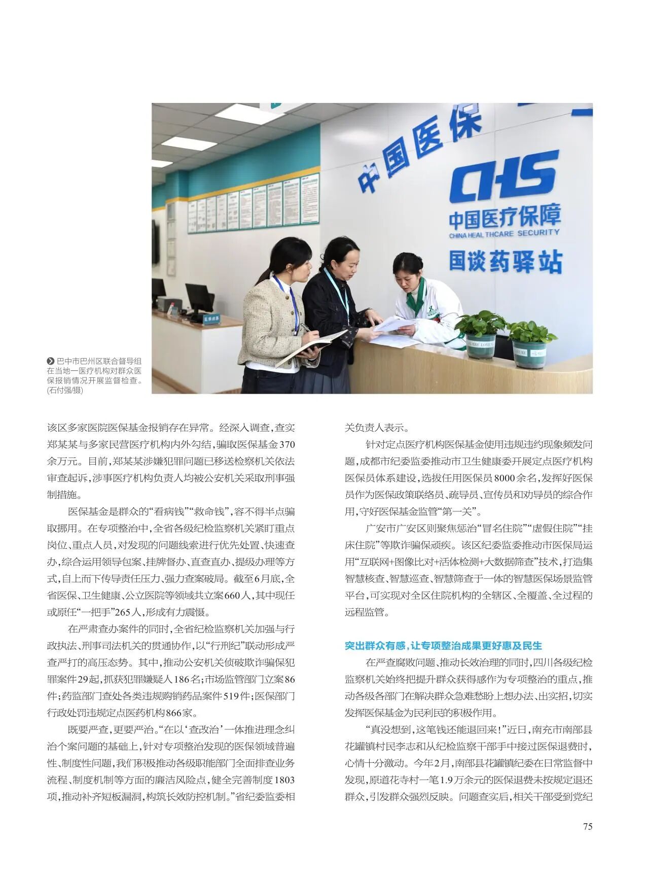在严查腐败问题、推动长效治理的同时,四川各级纪检监察机关始终把提升群众获得感作为专项整治的重点,推动各级各部门在解决群众急难愁盼上想办法、出实招,切实发挥医保基金为民利民的积极作用。