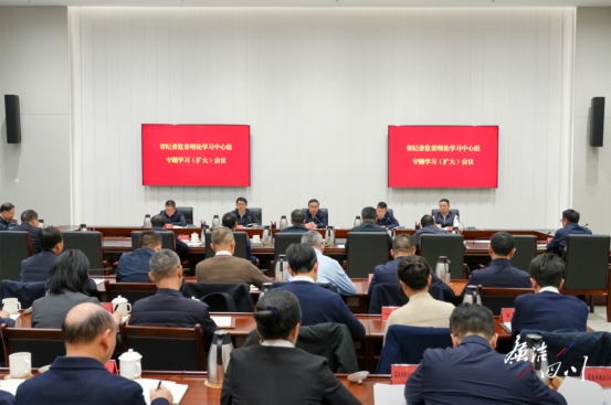 12月4日,省纪委监委机关召开领导班子理论学习中心组专题学习(扩大)会,围绕深入学习党的二十届四中全会精神和省委十二届八次全会精神,开展集中学习和交流研讨。省委常委、省纪委书记、省监委主任廖建宇主持会议并讲话。