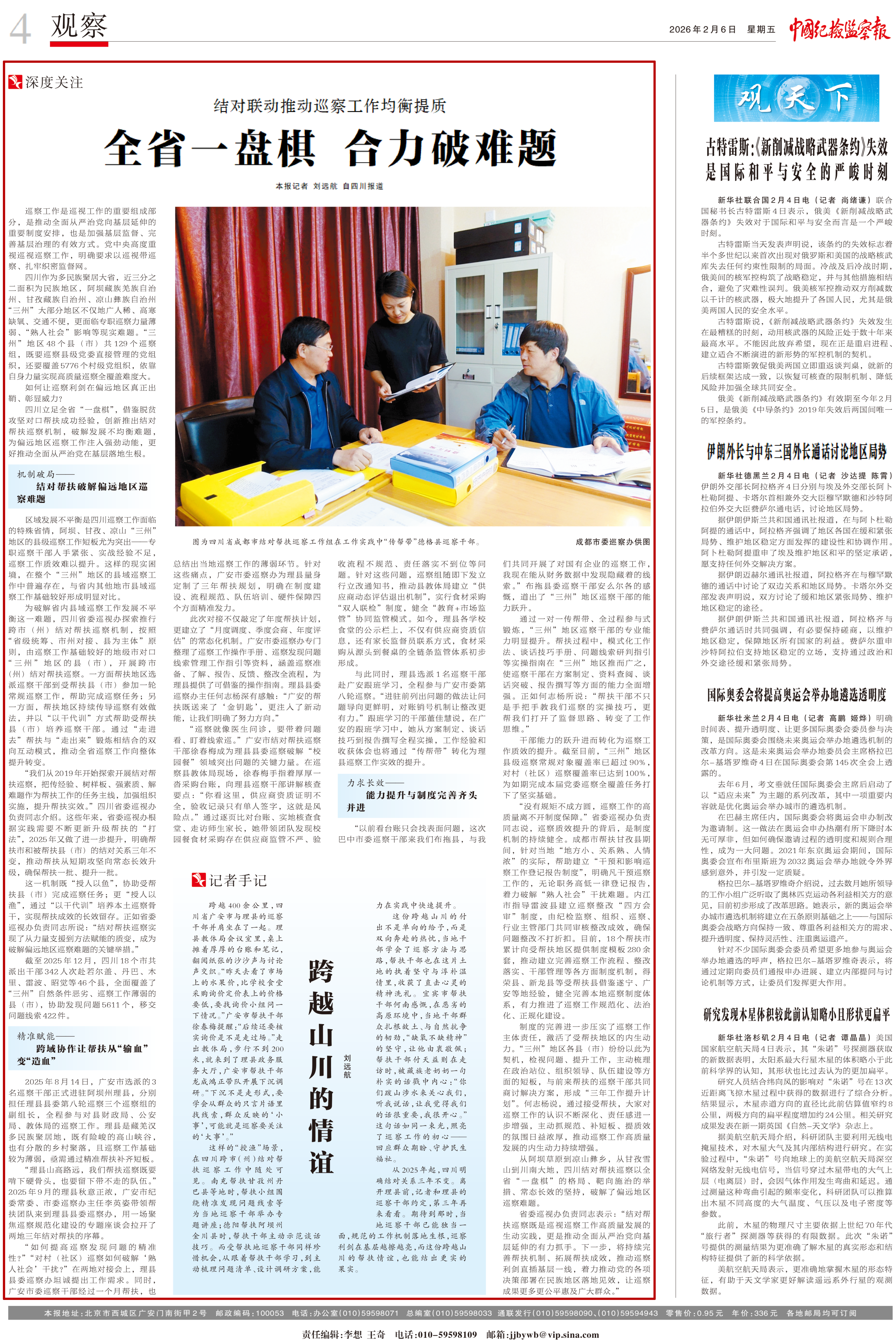 2026年2月6日,《中国纪检监察报》观察版刊发《结对联动推动巡察工作均衡提质 全省一盘棋 合力破难题》。