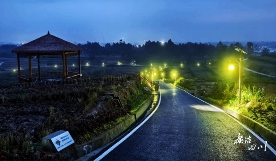 什邡市慈母山片区路灯照亮村道。(刘星月 摄)