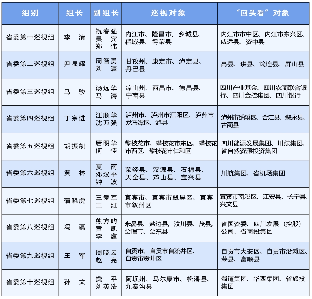 十二届省委第七轮巡视任务分工表