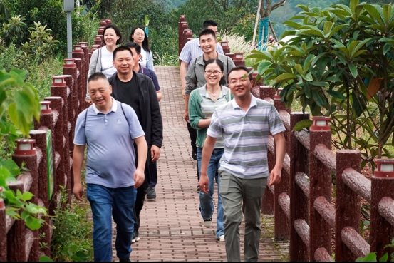 晋兆东(前排右)参加简阳市纪委监委机关工会组织的徒步活动 李溢慧/摄