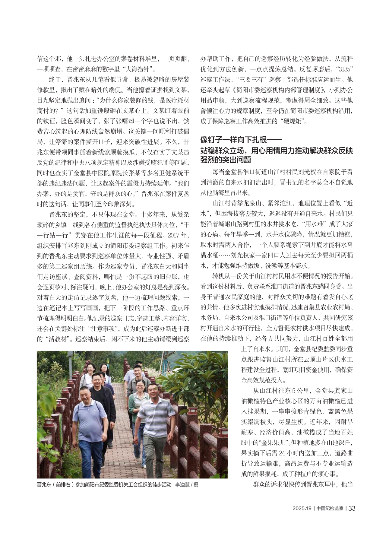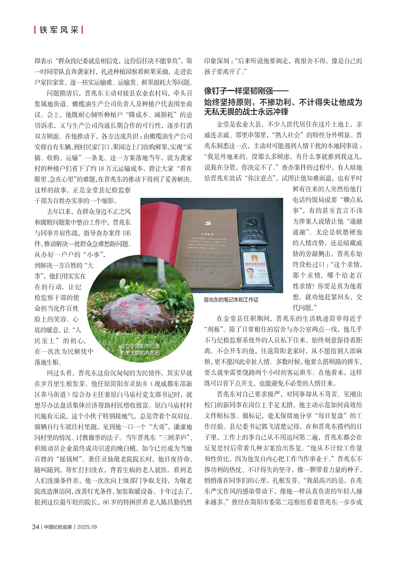2025年《中国纪检监察》杂志第19期“铁军风采”栏目刊发《笃行忠诚的“铁钉子” ——追记四川省金堂县纪委原副书记、县监委原副主任晋兆东》。